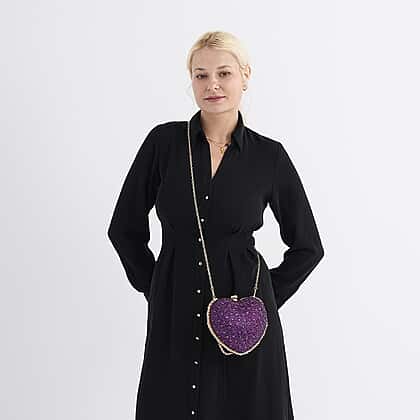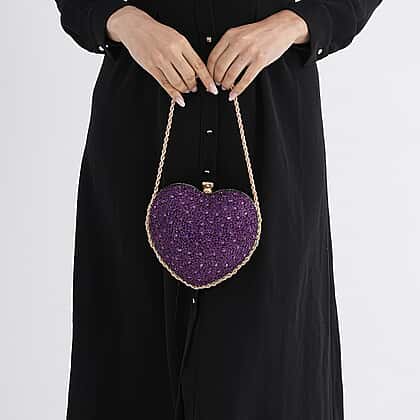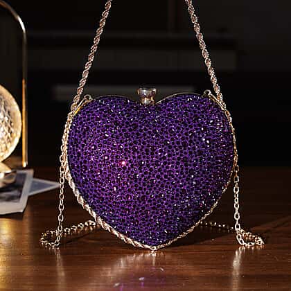 Sheeny Heart-Shaped Crystal Clutch Bag - Purple