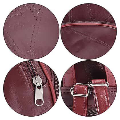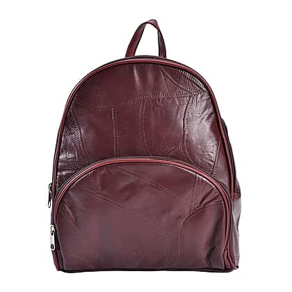 Sheepskin Leather Solid Backpack (Size 27x25x10 ) - Burgundy & Black