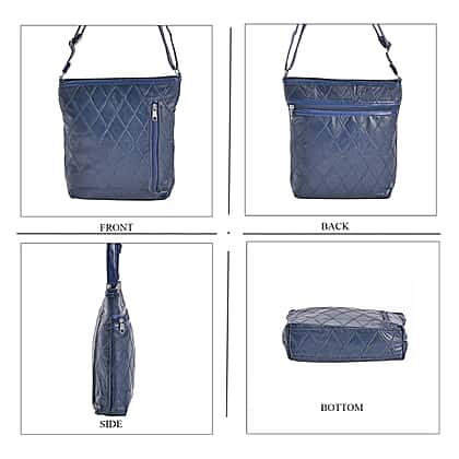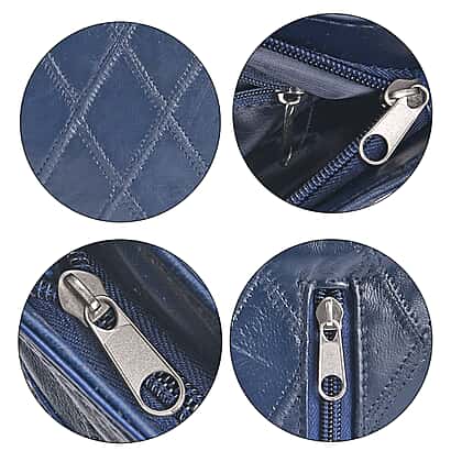 Sheepskin Leather Solid Shoulder Bag (Size 25x24x5 cm) - Blue & Black
