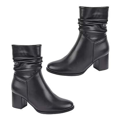 Step out in style with the Shoes by Emma LOLITA - Ladies Ruched Ankle Boots, perfect for elevating your everyday or formal look. Designed with a chic ruched detail, these ankle boots feature a convenient inside zip for effortless wear. The small cubed heel provides all-day comfort without compromising on elegance, making them ideal for work, casual outings, or evenings out. Pair them with tights and a dress for a classic look, or style them with jeans for a more relaxed vibe. These boots are a versatile wardrobe essential, blending comfort and fashion seamlessly.