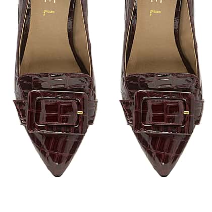 Ravel Burgundy Croc-Print Lincoln Block Heeled Court Shoes