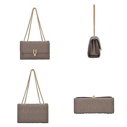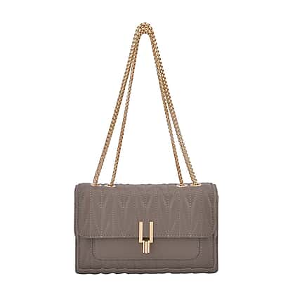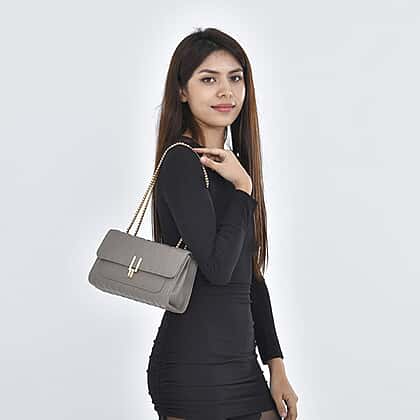 Closeout Deal - Genuine Leather Shoulder Bag with Chain Strap - Light Grey