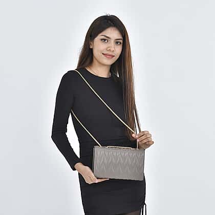 CloseOut Deal-Genuine Leather Shoulder Bag with Chain Strap - Light Grey