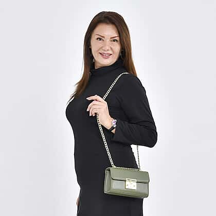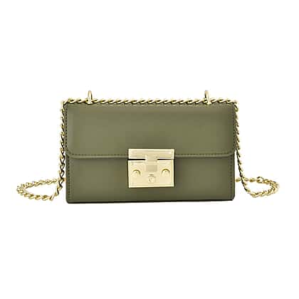 Solid Shoulder Bag with Squeeze Lock and Chain Strap - Olive