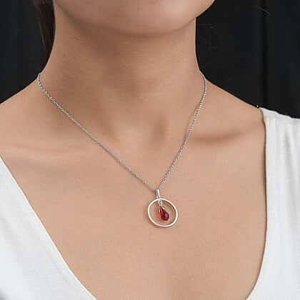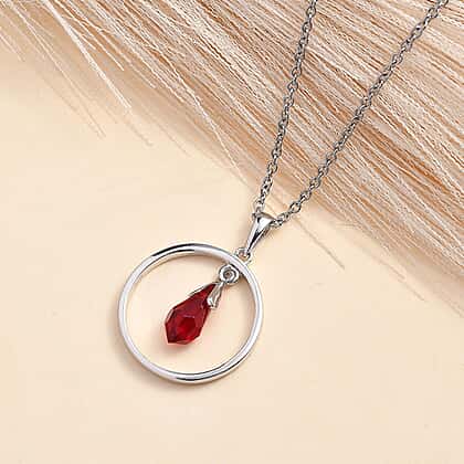 Siam Color Finest Austrian Crystal Solitaire Pendant with Chain (Size 20) in Platinum Overlay Sterling Silver