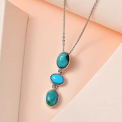 Sierra Nevada Turquoise and Arizona Sleeping Beauty Turquoise Pendant with Chain (Size 20) in Platinum Overlay Sterling Silver 2.34 Ct.
