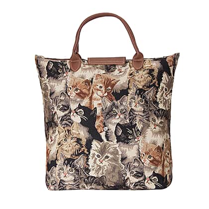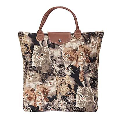 Signare Tapestry Foldway Shopping Bag in Cat Design Size 20x12x9.5 Cm