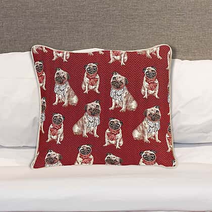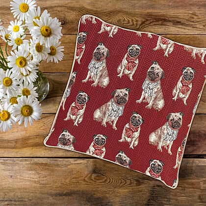 Signare Tapestry Red Pug Pattern Cushion Cover 45 x 45cm