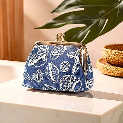Signare Tapestry Fabric Coin Pouch (Size 4x12x8 cm) - Gold Blue