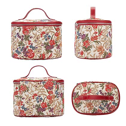 Signare Tapestry Flower Meadow Pattern Vanity Bag (Size 14X22X15 Cm) - Red