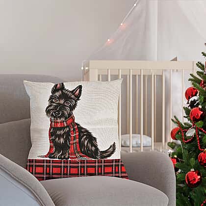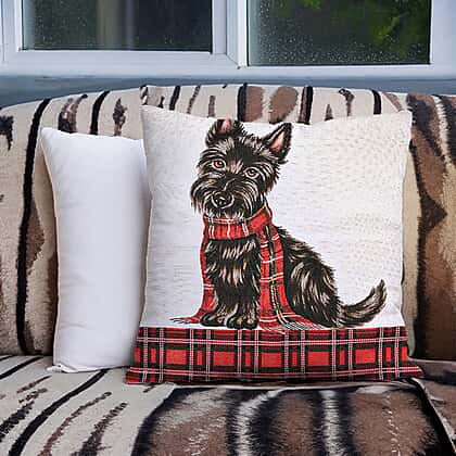 This Scottie print cushion cover will give your space Christmas vibes. It is made from signare tapestry woven fabric which is 100% cotton making it soft, comfortable and durable. This cover features a Scottie print with a scarf around her neck, piped edges and concealed zip for more convenient use. You can protect your cushion cover from dust, wear and tear.