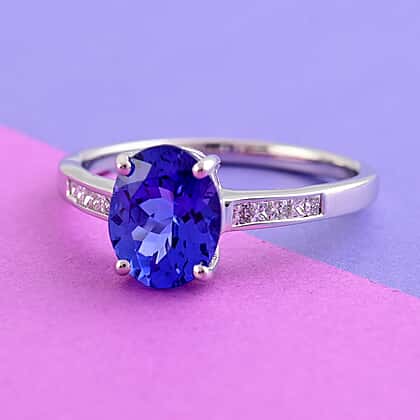 RHAPSODY 950 Platinum AAAA Tanzanite Solitaire Ring with Diamonds 3.07Ct.