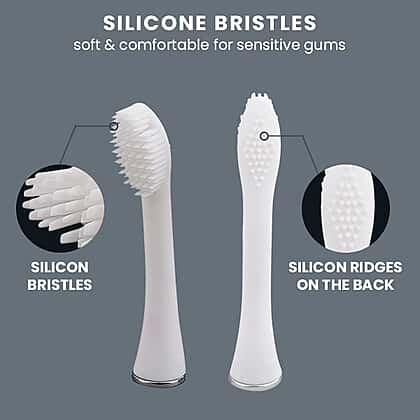 - SILICONE BRISTLES: Silicone bristles are designed to be comfortable to use and are suitable for sensitive gums