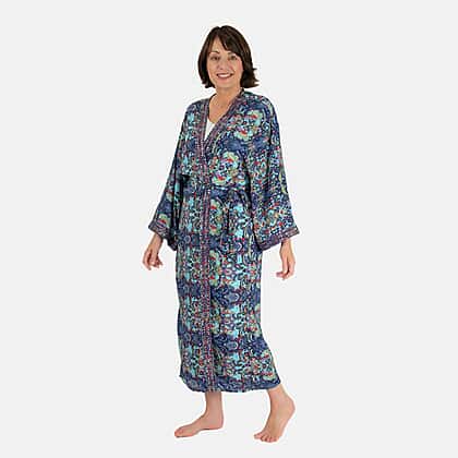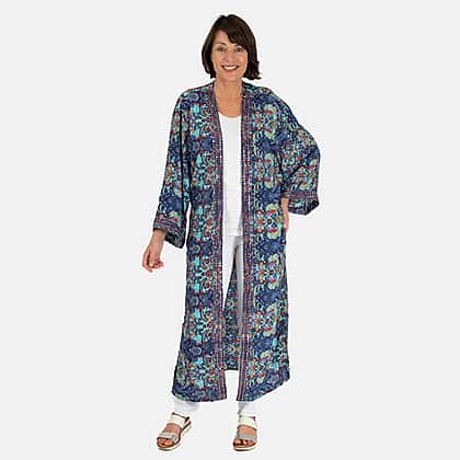 Style this floral print embroidered Kimono for your everyday go-to look. It is made from a soft and comfortable fabric with a printed design. For a classic look, the embroidered detailing on the edges, full sleeves, and a tie-waist belt.