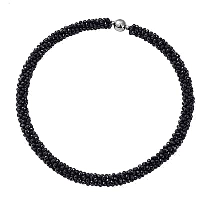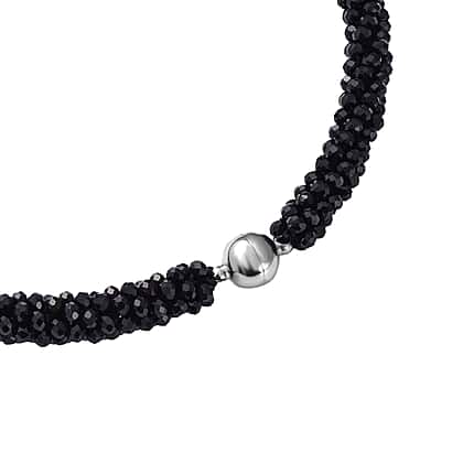 Adorn your necklines with this stunning simulated black spinel necklace that will catch the attention of all! The black glass beads are arranged in a sleek and contemporary design throughout the length of the necklace. The popcorn-chain pattern of the necklace offers a striking yet balanced composition. The necklace comes in matinee length, complementing each style of attire. The texture of the necklace is exciting yet comfortable due to the rounded beads. Add it to your collection for a bold look.