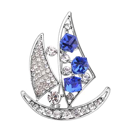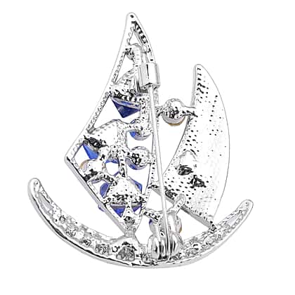 Give your dress a new look with this simulated blue sapphire and white Australian crystal ship brooch. It is made from durable metal in a silver tone to give it a shine. In addition, this ship-shape brooch is decorated with gemstones in vivid shapes to give it shine and sparkle. It comes with a pin at the back to secure the fit.