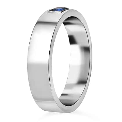 Simulated Blue Sapphire Solitaire Band Ring in Titanium