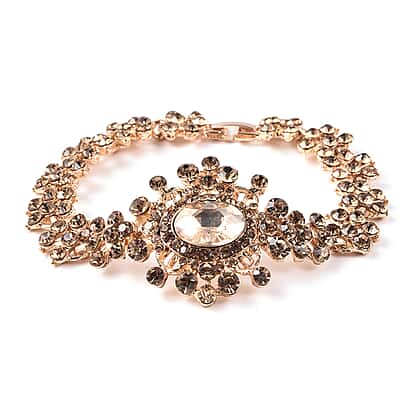 Simulated Champagne Diamond (Ovl), Champagne Colour Austrian Crystal Bracelet (Size 7.5) in Yellow Gold Tone