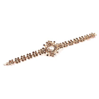 Simulated Champagne Diamond and Champagne Colour Crystal Victorian Bracelet in Gold Tone 7.5 Inch