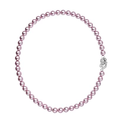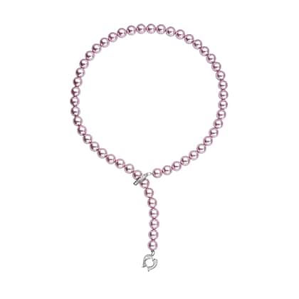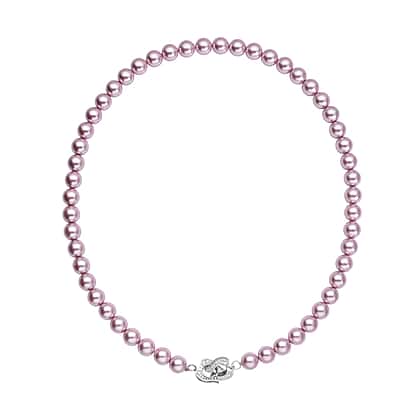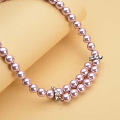 Simulated Diamond and Lavender Colour Shell Pearl Necklace (Size - 22) in Silver Tone