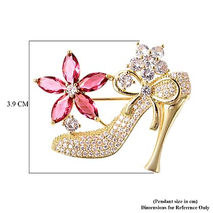 Simulated Diamond and Simulated Pink Sapphire Heel Brooch or Pendant in Gold Tone