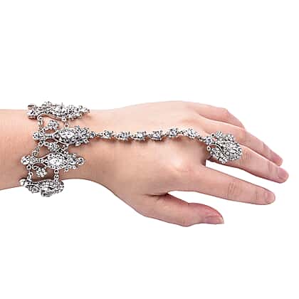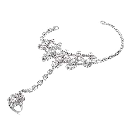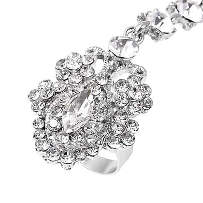 Simulated Diamond and White Austrian Crystal Bohemian Design Ring Bracelet 6 with 3 inch Extender