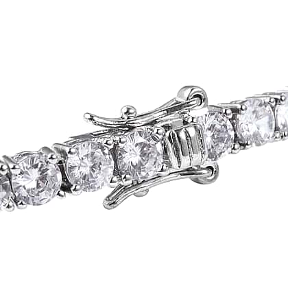 Simulated Diamond (Rnd) Bracelet (Size 8) in Silver Tone