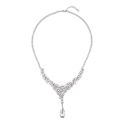 Rekindle your romance and ask her on a date night as you gift her this classic necklace studded with sparkling gemstones. The Simulated Diamond & White Austrian Crystal Necklace features a cluster of 100 Austrian crystals and a simulated diamond drop that adds to its charm. The white Austrian crystals boast a faceted cut, which creates a sparkling effect. The necklace is finished in a silver tone, which gives it a classic look.