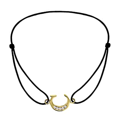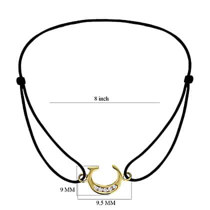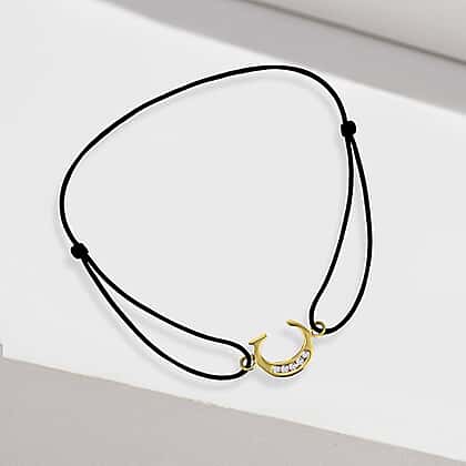 C Initial Black Cord Adjustable Bracelet 4.5 Inch to 8 Inch in 9K Yellow Gold Cubic Zirconia 9.5mm x 8mm
