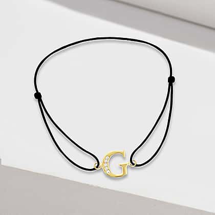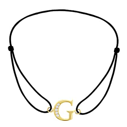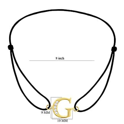 G Initial Black Cord Adjustable Bracelet 4.5 Inch to 8 Inch in 9K Yellow Gold Cubic Zirconia 10mm x 9mm