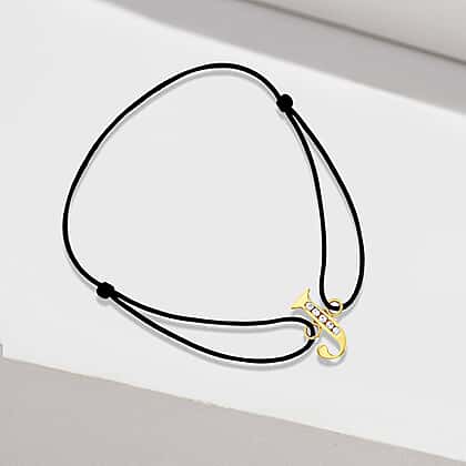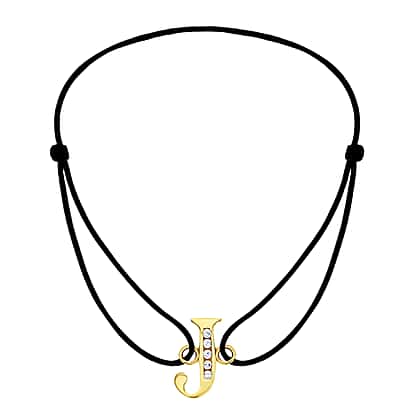 J Initial Black Cord Adjustable Bracelet 4.5 Inch to 8 Inch in 9K Yellow Gold Cubic Zirconia 5.5mm x 10.5mm