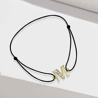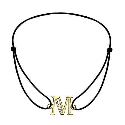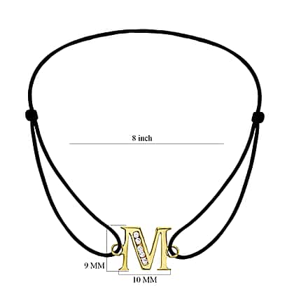 M Initial Black Cord Adjustable Bracelet 4.5 Inch to 8 Inch in 9K Yellow Gold Cubic Zirconia 10mm x 9mm