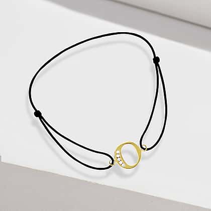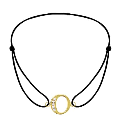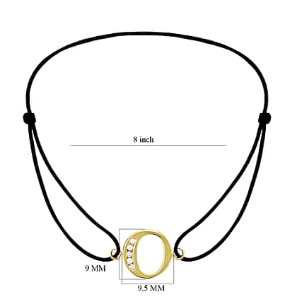 O Initial Black Cord Adjustable Bracelet 4.5 Inch to 8 Inch in 9K Yellow Gold Cubic Zirconia 9.5mm x 9.5mm
