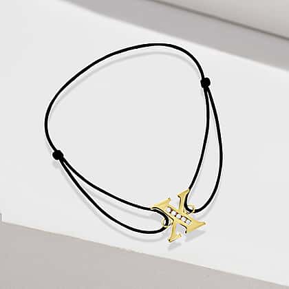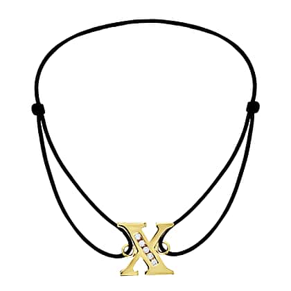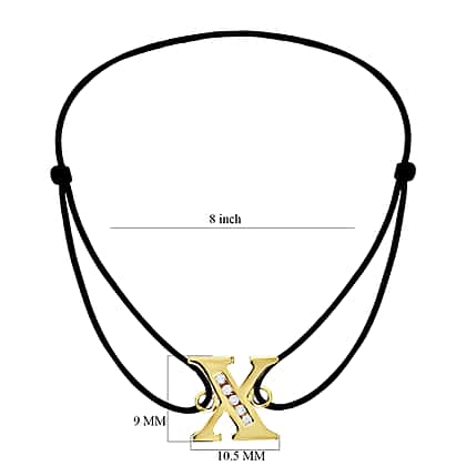 X Initial Black Cord Adjustable Bracelet 4.5 Inch to 8 Inch in 9K Yellow Gold Cubic Zirconia 10.5mm x 10mm