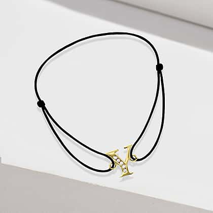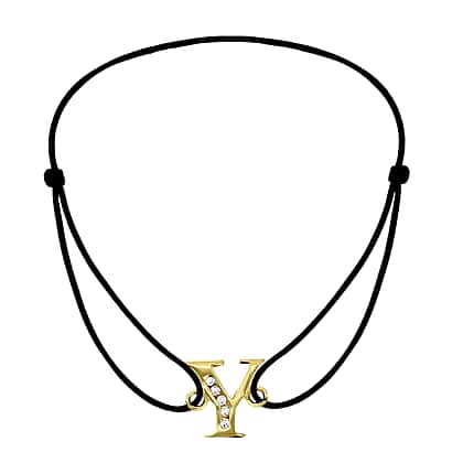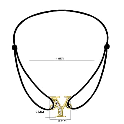 Y Initial Black Cord Adjustable Bracelet 4.5 Inch to 8 Inch in 9K Yellow Gold Cubic Zirconia 10mm x 9.5mm