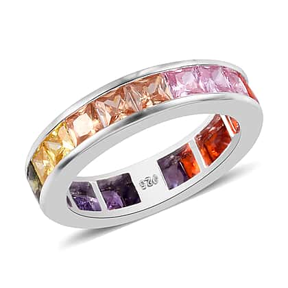 Simulated Multi Colour Gemstone Full-Eternity Band Ring in Sterling Silver