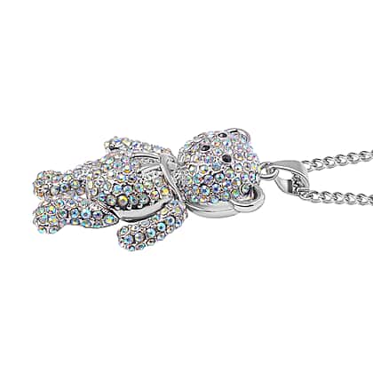 Simulated Mystic White Crystal & Austrian Black Crystal Teddy Bear Necklace (Size - 29-2 inch Ext.)
