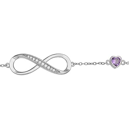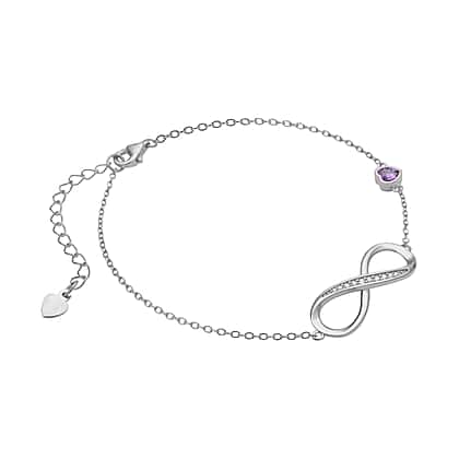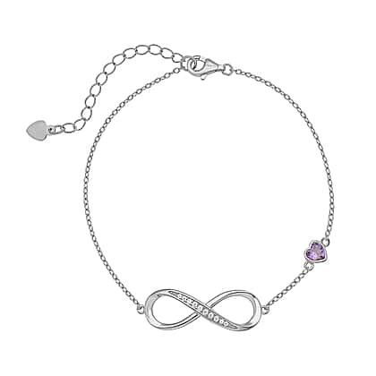 Simulated Purple Sapphire and Simulated Diamond Infinity Bracelet (Size 7.5-1.5 Inch Ext.) in Rhodium Overlay Sterling Silver.