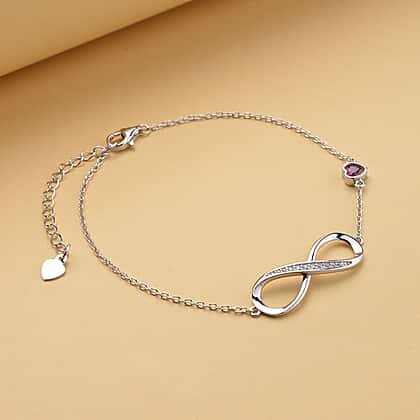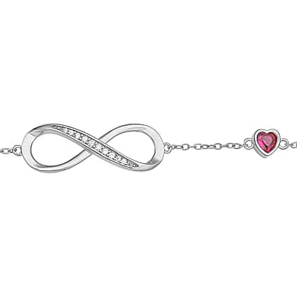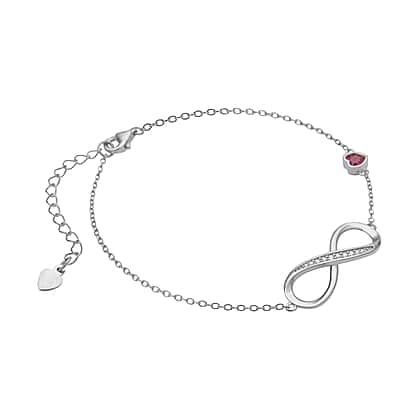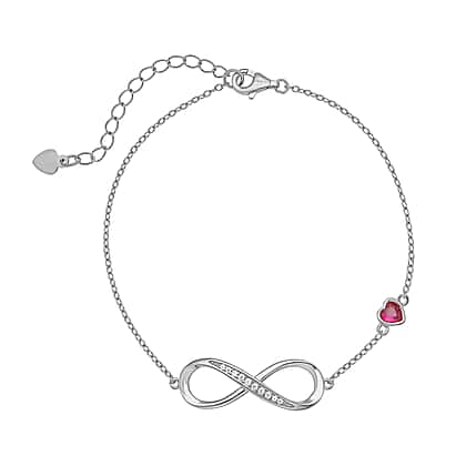 Simulated Red Sapphire and Simulated Diamond Infinity Bracelet (Size - 7.5 with 1.5 Inch Extender) in Rhodium Overlay Sterling Silver.