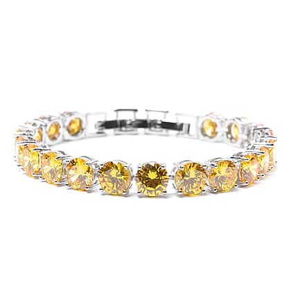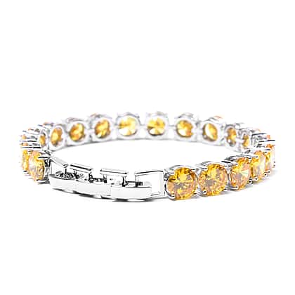 Glwoing and Radiant Simulated Yellow Sapphire Bracelet in Silver Tone with Size 8 with Extender