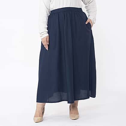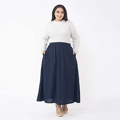TAMSY 100% Viscose Skirt With Elastic on Waist (Size S) - Navy