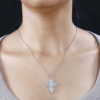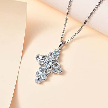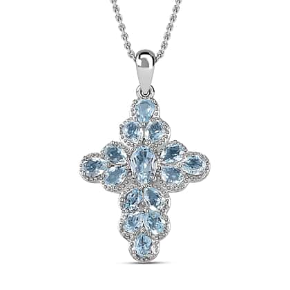 Skyblue Topaz Cross Pendant with Chain (Size 20) in Platinum Overlay Sterling Silver 3.01 Ct, Silver Wt. 5.93 Gms