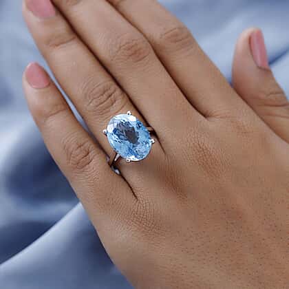 Skyblue Topaz Solitaire Ring in Platinum Overlay Sterling Silver 15.00 Ct.