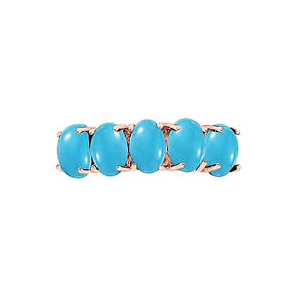 Sleeping Beauty Turquoise 5 Stone Ring in Vermeil Rose Gold Sterling Silver 2.50 Ct