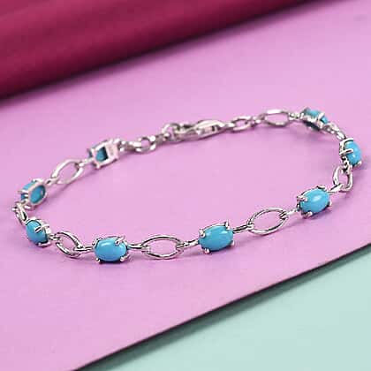 3 Ct. Sleeping Beauty Turquoise Line Bracelet in Platinum Plated Sterling Silver