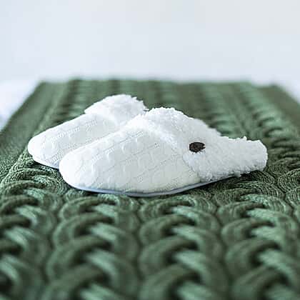 ARAN Knitted Design Slip-on Slippers with Fur Lining - White
