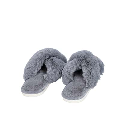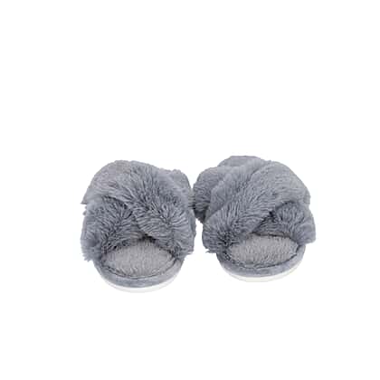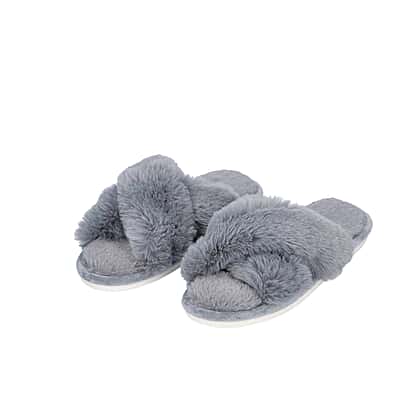 Super Soft Faux Fur Cross Band Slippers - Grey