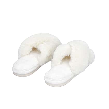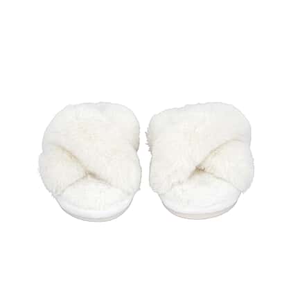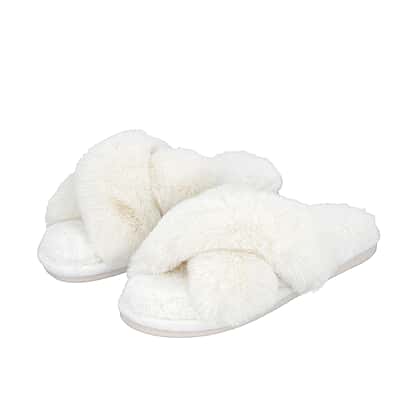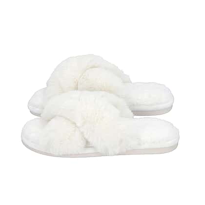 Super Soft Faux Fur Cross Band Slippers - Ivory