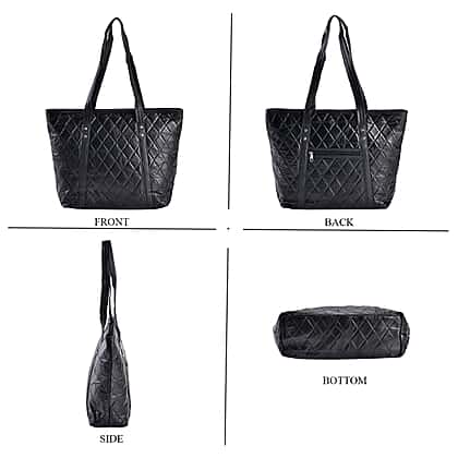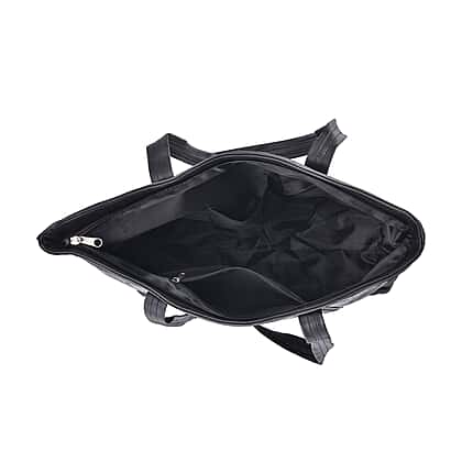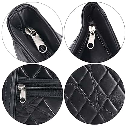 Genuine Leather Patch Work Shoulder Bag - Black