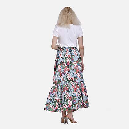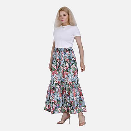 TAMSY 100% Viscose Elastic Waist Summer Floral Print Maxi Skirt (One Size) - Green